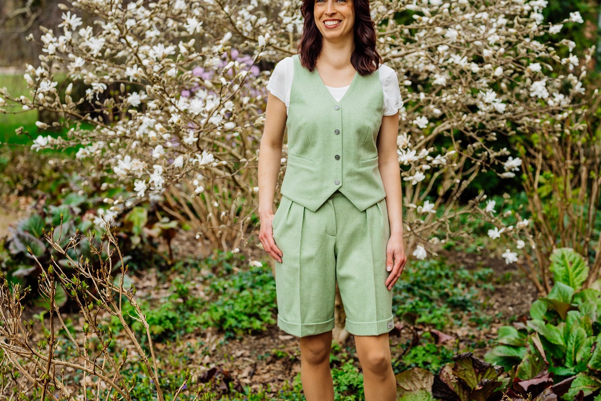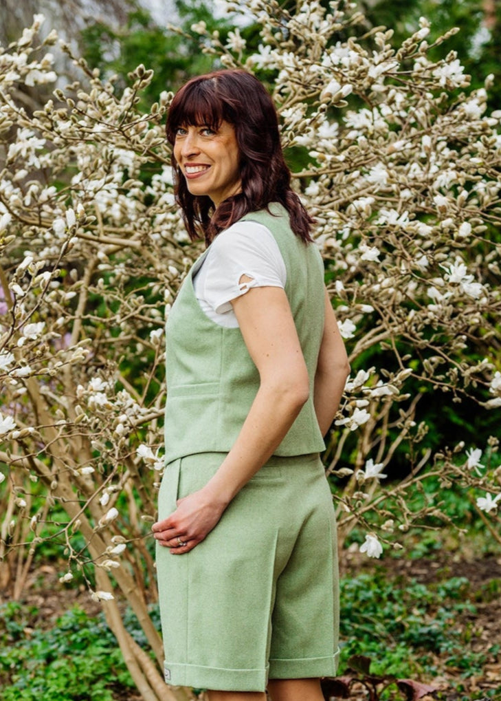Der klassische, zeitlose Schnitt von Line verbindet auf eine dezente Weise Eleganz und Weiblichkeit. Sie ist aus weichem Urmerino-Walkloden gefertigt und mit Bio-Baumwolle gefüttert, was für besonders angenehmen Tragekomfort sorgt. Die kleinen, schrägen Leistentaschen setzen dezente, stilvolle Akzente und erhöhen optisch die Taille. Line ist in den sanften Farben Sarrubeco und Wasserkresse erhältlich und lässt sich perfekt mit unseren Damenshorts Siri kombinieren.